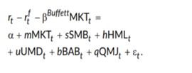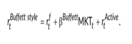 回归系数与表4第五列中的系数相同,只是市场因子被减少了一个βbuffett的量。等式右边不包括Alpha和误差项反映了巴菲特的主动选股倾向。