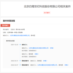 据天眼查公开信息显示,北京白鹭世纪科技股份有限公司(下文简称:白鹭科技)和创始人、CEO陈书艺于去年12月被列为失信被执行人,执行标的为2594.8294万元,申请人为IDG资本旗下的IDG中国创业投资基金四期(IDG China Venture Capital Fund IV L.P.)和相关实体IDG China IV Investors L.P.。由于被执行人未按时履行给付义务,双双被限制消费,生效时间为今年3月底和4月初。