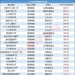 根据私募排排网统计,在上半年有净值更新的2万多只基金中,收益为正的占比为36%,其中业绩翻倍的基金有26只。
