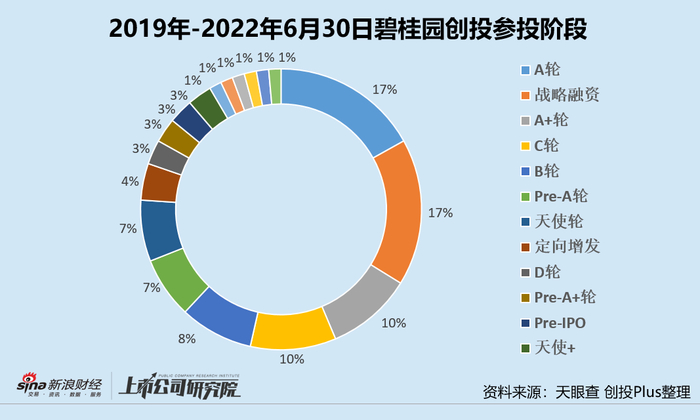 从投资策略来看,包括天使轮系列、Pre-A轮系列、A轮系列在内的早期项目占总投资数约47.89%,战略投资、Pre-IPO、股权融资系列等成熟期项目占总投资数约23.94%。这种押注企业发展阶段两端的模式被碧桂园创投归纳总结为“哑铃式投资”:早期项目所需资金量相对较小,碧桂园创投的产业资源和长期稳定的资本周期有助于初创企业潜心发展,而成熟项目风险更低,投资回报可观,碧桂园创投进入时资金优势明显。