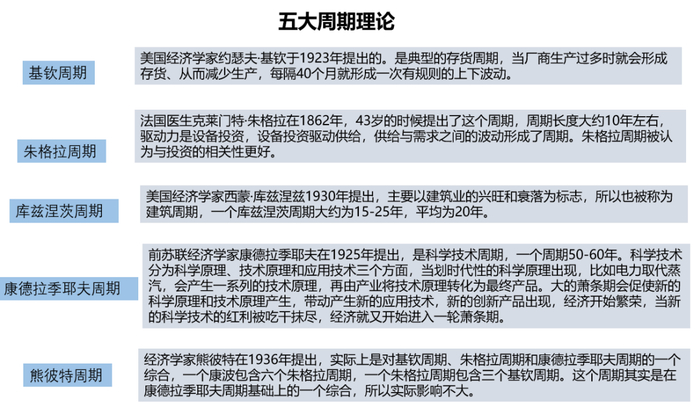 上图是我们整理的学术界公认的五大周期理论,其中基钦周期大概的时间长度,就是40个月,这与43个月基本接近。