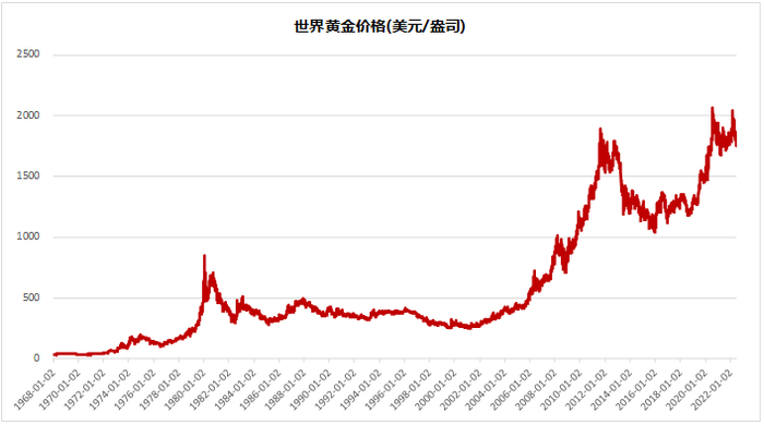 1944年7月,44个国家在美国布雷顿森林体系签订了“全球金融协议”,确定了美元的结算货币地位,将美元与黄金的对价限定为35美元每盎司。在这之后的20多年了,黄金与美元的比价一直很稳定,直到1971年8月15日,美国放弃金本位制,限制了多年的黄金如鸟如森林,鱼归大海,一发不可收拾,所谓盛世古董乱世黄金,局势越乱黄金价格越高。1971年还能将黄金价格维持在40美元每盎司的价格上,到1980年初这个价格最高冲到了850美元每盎司。这个价格离谱到28年后的2008年初,黄金才又一次突破这个价格。