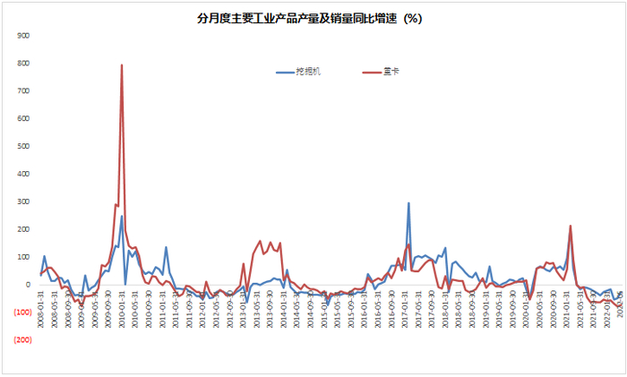 我们仿照国金证券的方法,把重卡和挖掘机的同比数据也做成了一张图。