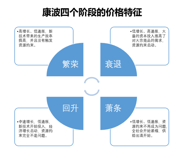 康波周期萧条期的特征是低增长、低通胀。周金涛对萧条期的描述是“以一次滞涨展开,滞涨之后就是消灭通胀的过程。”