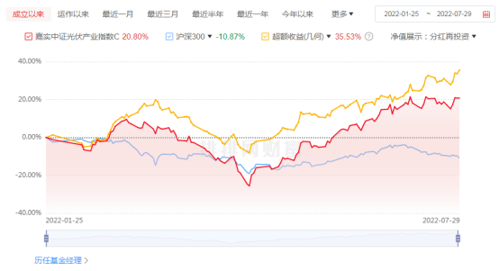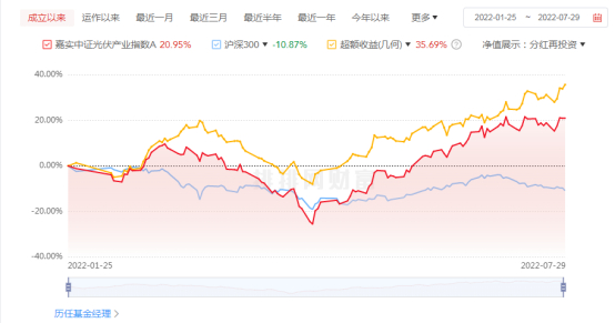 聚源数据显示,嘉实中证光伏产业指数基金A自成立以来累计收益达20.95%,嘉实中证光伏产业指数基金C自成立以来累计收益达20.8%,收益与中证光伏产业指数涨幅基本贴合。