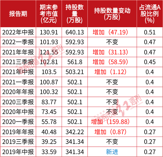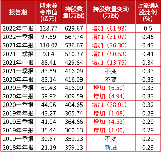 持仓总市值260亿元创新高
