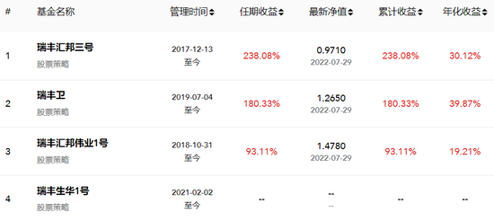 《红周刊》注意到,除了瑞丰汇邦三号,郑松有还管理瑞丰卫、瑞丰汇邦伟业1号、瑞丰生华1号三只基金。