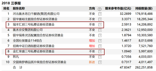 图4 金汇荣盛三号基金、瑞丰汇邦三号基金共同持仓老白干酒