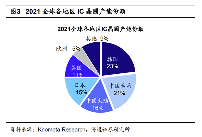若联盟成立将威胁我国半导体产业链供应安全。半导体市场是典型的强供应商话语权的市场,半导体技术、设备、材料以及代工等环节被少数几家巨头所掌控。从当前半导体产业分布看,美国在核心芯片、半导体设备具有主导性地位;中国台湾21年在晶圆代加工的产值占全球份额的62%;韩国21年在内存芯片的市占率达71%;日本在半导体设备和材料中也具有重要位置。
