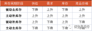 义库存是对于微观企业主体而言,供给与需求的直接反映,可以理解为当期供给与需求的差额,其变化通常体现为一段时期内供需的相对强弱。狭义库存下降代表商品阶段性供不应求,流通价格存在上涨可能,需求回暖刺激企业进行积极的存货投资安排。因此被动去库存与主动补库存通常对应于需求扩张,反之被动补库存与主动去库存则对应于需求下行。