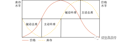 根据库存由降至增和库存由增至降的两阶段来看,库存周期可分为补库存阶段和去库存阶段。根据库存增降的主动性与被动性来分,补库存阶段分为被动性库存减少和主动性库存增加;去库存阶段分为被动性库存增加和主动性库存降低。