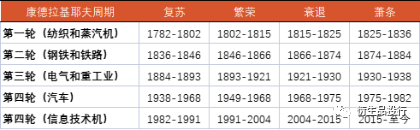 1925年前苏联经济学家康德拉季耶夫提出资本主义经济发展存在周期循环时间跨度约50-60年的长周期,世界经济发展历程可以划分出复苏、繁荣、衰退、萧条四个阶段。自1782年以来,全球经济总共经历了四次完整的康波周期: