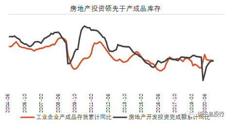 黑色金属压延业、非金属矿物制品以及化学原料等中上游制造业部门的库存周期与地产周期联系尤为紧密。从历史走势看,房地产开发投资完成额同比增速领先产成品存货同比增速约6至12个月,这种领先关系也反映出了需求对库存的主导作用。