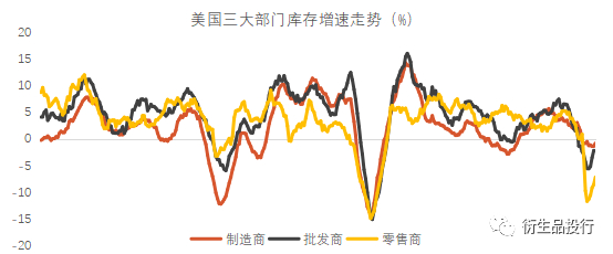 制造商、批发商和零售商的库存,分别对应生产环节中的上游生产、中游流通、下游销售。美国库存对大宗商品价格的影响,主要源于制造商库存和批发商库存。美国制造商和批发商库存走势趋同,且与大宗商品价格走势高度相关。随着国际贸易的发展以及美国本土低端产业外迁,美国在零售商库存上可依托进口海外产成品,导致其和上游生产环节补库周期不同步,因此零售商库存走势时常与前二者发生背离。