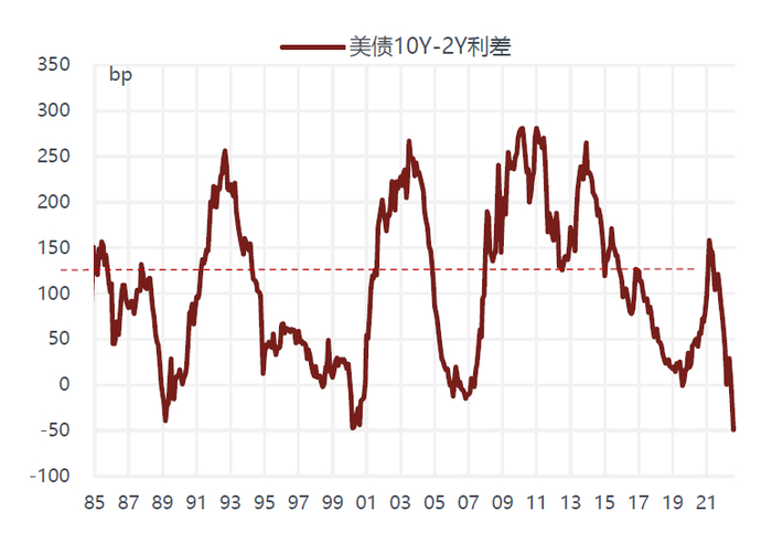 自7月中旬以来美股持续反弹,标普指数已经收复了年初以来一半以上的跌幅。除原油外大多数商品价格也出现了明显的反弹,伦铜累计上涨10%以上,并带动通胀保值债券隐含的通胀预期回升。高收益债信用利差也下行近150bp,重新回到500bp以下。所有的风险资产走势似乎都表明市场对美国经济衰退的担忧有所减弱,但债券市场传递的信号却显得十分不和谐。美债收益率曲线在这段时间变得更加平坦,10-2利差再次出现倒挂,并且一度下行至接近-60bp,创下1980年以来的最大倒挂水平。从历史数据的统计结果来看,这样的倒挂程度意味着未来12个月美国经济衰退的概率超过40%。那么为什么美债和其它大类资产的表现出现如此明显的矛盾呢?是债券市场对经济基本面过于悲观还是风险资产宣泄了过度的乐观情绪呢?