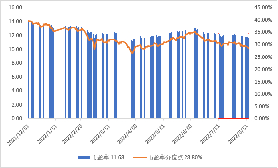本期(2022/07/29–2022/09/02)沪深300指数涨跌幅为-3.51%,年内涨跌幅为-18.56%。截止9月2日,沪深300动态市盈率为11.68,处于指数成立以来的28分位,低于历史时期72%的水平。指数五日均线换手率位于近五年23分位,整体交易活跃度较7月有所下行。