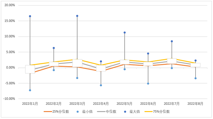 图6:代表产品今年以来月度超额四分位图