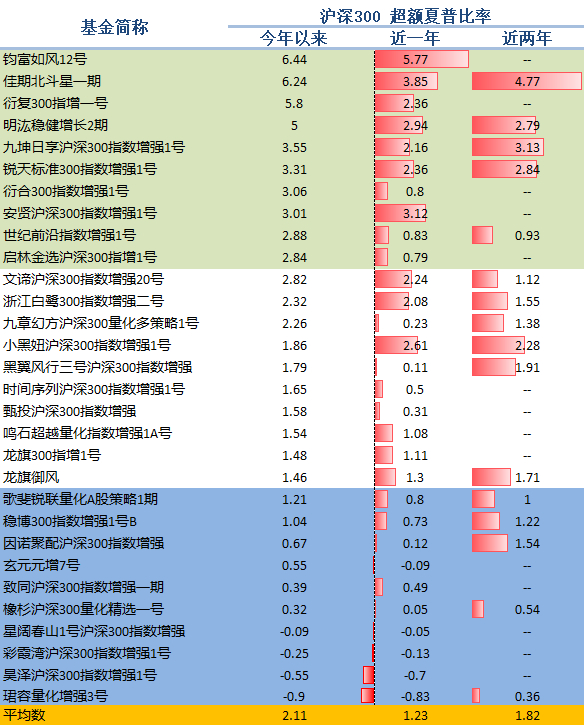 图9:代表产品期间超额夏普排名