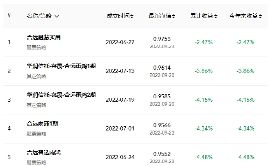 从业绩表现来看,目前合远私募旗下有合远融慧实启、华润信托-兴晟-合远雨鸿1期、华润信托-兴晟-合远雨鸿2期、合远雨沛1期、合远智选雨鸿等私募基金展示了净值,截至9月23日,业绩均跑赢同期大盘。