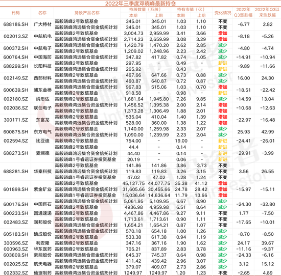 整体来看,邓晓峰的持股主要集中在军工和医药领域,其中增持的上市公司数量5,减持数量11,新进3,不变5。