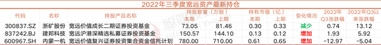 截至三季末,宽远资产增持建邦科技、内蒙一机,增持数量分别为6.47万股、70万股。