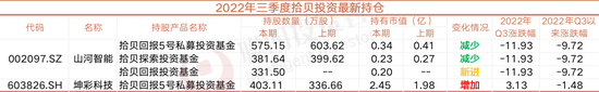 截至三季度末,拾贝投资共出现在2家公司的前十大流通股东名单中,分别是山河智能和坤彩科技。