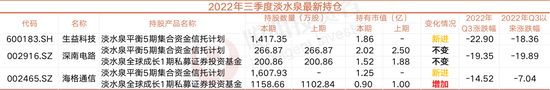 三季度,淡水泉新进生益科技,增持海格通信,对深南电路持股保持不变。