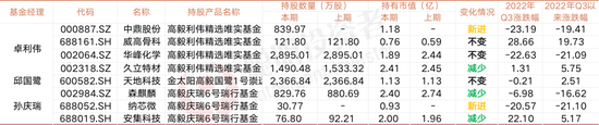 孙庆瑞新进纳芯微,减持森麒麟、安集科技;卓利伟减持久立特材,新进中鼎股份,持股威高骨科、华峰化学不变;邱国鹭持股天地科技不变