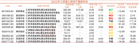 3.减持西部黄金,旗下仁桥泽源股票私募证券投资基金三季度减持49.92万股,减持后,持股数量达413.20万股。