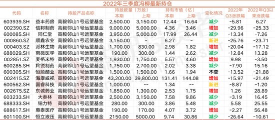 三季度,冯柳不仅加仓了大量的医药股,同时,也减持了不少。