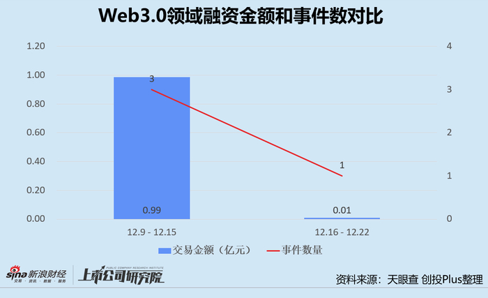 本周(2022年12月16日-2022年12月22日)国内创投圈共发生97起投融事件,环比下降17.80%。其中,63起事件披露了融资金额,总融资额超171.34亿元。