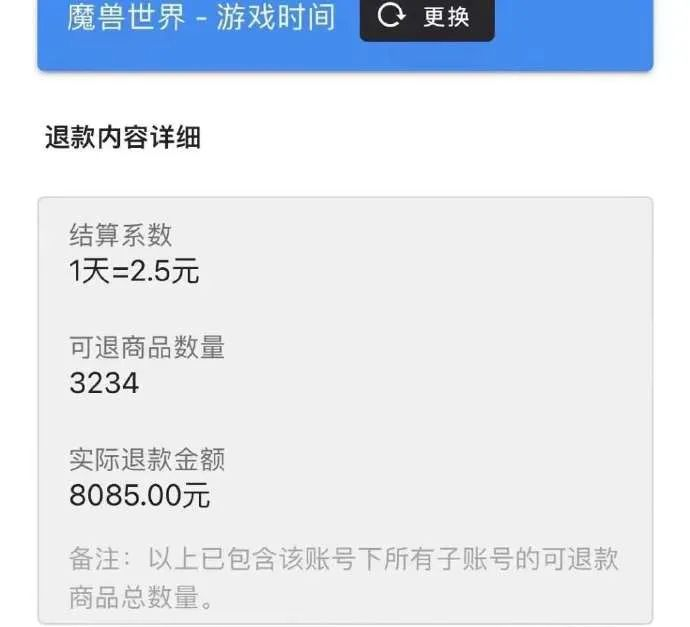 另外,玩家需前往“暴雪游戏服务中心”公众号提交退款申请,最终退款金额将以停运后玩家账号内实际剩余的可退款商品数量为准,且不会超过该账号可退款商品的历史累计付费金额。