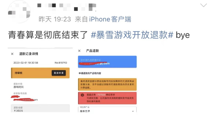 网易暴雪游戏客服团队表示,2023年2月1日11时起,针对玩家在“暴雪游戏产品”中已充值但未消耗的虚拟货币或未失效的游戏服务开放退款申请通道。提交退款申请的截止日期为2023年6月30日,未在截止日期前提交退款申请的玩家将被视为主动放弃相关权益。