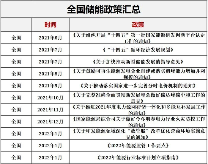 黑鹰光伏统计发现,从2021年至今,国家及地方政府密集出台300多项与储能相关的政策,并明确锁定2030年30吉瓦的储能装机目标。备受关注的文件是,2022年3月21日,相关部委印发的《“十四五”新型储能发展实施方案》。此外,截止2022年底,全国已有近30个省份出台了“十四五”新型储能规划或新能源配置储能文件,规划的新型储能发展目标已超6000万千瓦,是国家能源局《关于加快推动新型储能发展的指导意见》中所确定目标的两倍。