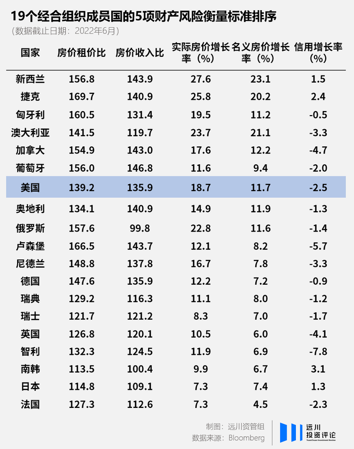 不仅是美国,老牌资本主义国家房价都进行了一轮暴力反弹。依据Bloomberg数据,截至2022年6月,OECD 38个国家里足足有19个国家的房价租金比与房价收入比高于2008年金融危机前夕水平[4]。