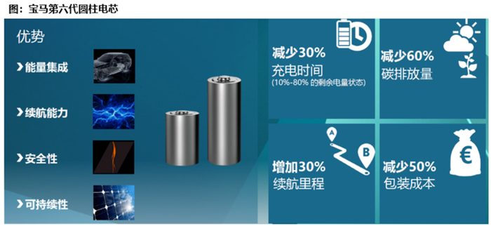 ·宝马是46大圆柱的积极推进者。宝马将从2025年起在“新世代”车型中使用46大圆柱电芯(包括4695和46120两种不同型号)。目前宝马已经给宁德、亿纬、远景各自定点40GWh的46大圆柱订单。