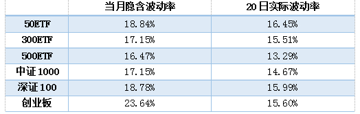 当月隐含波动率与20日实际波动率对比如下: