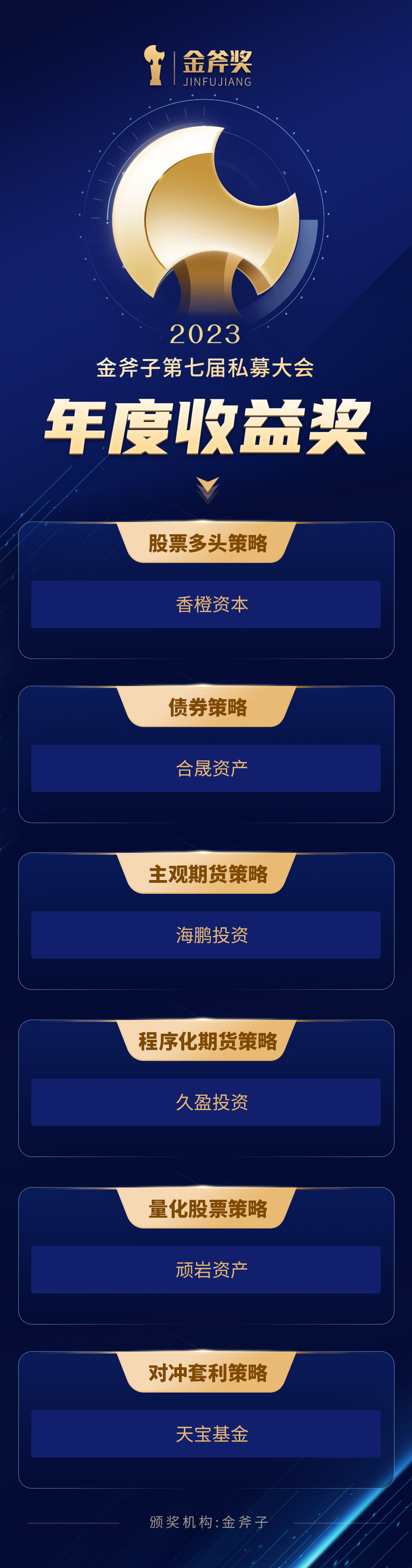 从本年度收益定量评选出发,考虑了可比性、公平性后,挑选出在各策略同类产品中收益更突出、所属管理公司更健全、规模大小合适的非单账户非结构化的阳光私募产品。香橙资本、合晟资产、海鹏投资、前海久盈、顽岩资产、山东天宝荣获2022年“年度收益奖”。