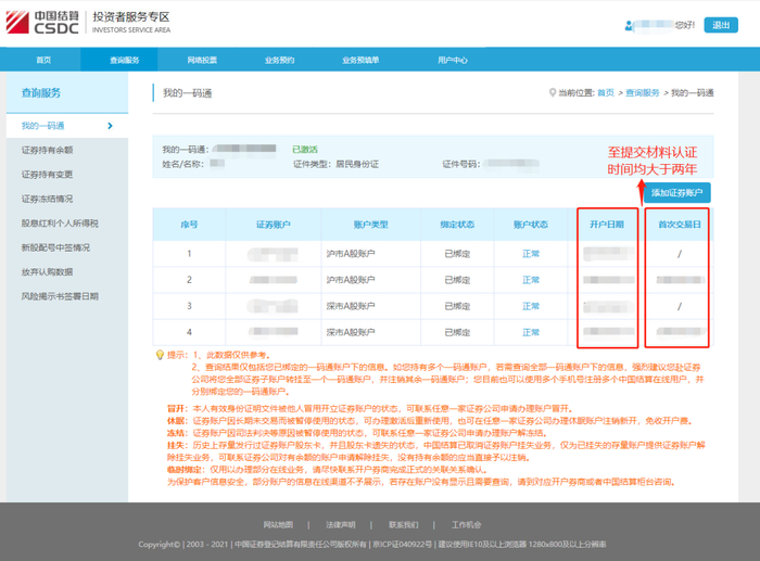 3.1 两年以上证券、基金、期货、黄金、外汇(任选其一即可)等的投资账户开户及交易证明,理财产品及货币基金等风险需求过低除外(≤R3),示例如下: