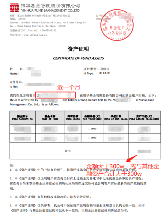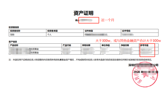 需出具合格投资者资格认定前近一个月内的金融资产(如12月31日提交材料,则资产证明材料日期应在12月1日至12月31日期间)。