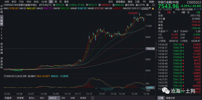 另外一波类似的行情发生在2014-2015年,那波牛市里,首先点火的是券商板块。