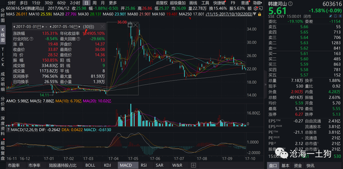 以雄安概念股韩建河山为例,行情从2017年4月初开始,一直持续到5月中旬,大概维持了一个半月。