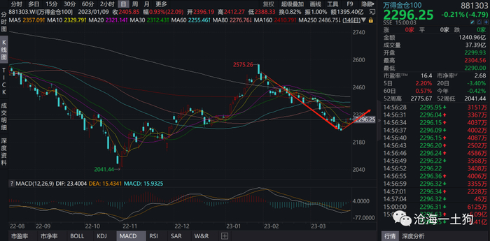 目前,十年国债利率在2.87%附近,剩余流动性极其充沛;不完备资金正在大搞特搞中特估和AI概念;剩下的就是等风险偏好的持续抬升了。现在,我们刚刚看到万得金仓100指数企稳。