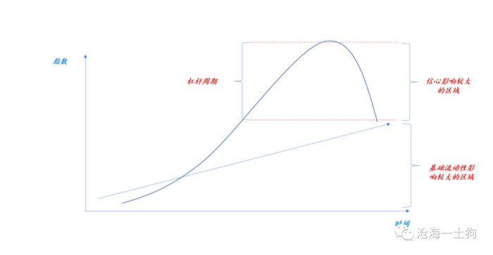 对称的,市场也可以分为两个区域:1、受信心影响较大的区域;2、基础流动性影响较大的区域;