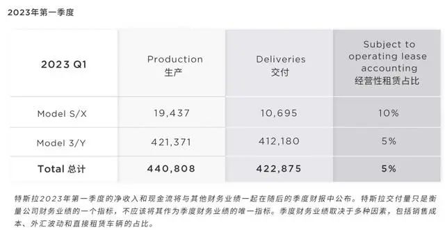特斯拉2023年第一季度全球生产及交付报告显示,2023年以来,公司全球交付约42.3万辆;其中美国市场交付约为18.1万辆,同比增长39.5%。具体车型方面,Model 3/Y作为主力车型,一季度产量421371辆,交付量为412180辆;Model S/X生产19437辆,交付10695辆。