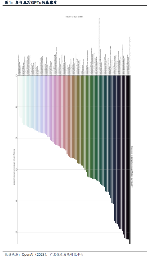 但与工业革命以来,历次技术变革引起就业从农业、工业转向服务业,从土地、工厂转向办公室不同,人工智能技术将替代人类智力,人工智能对就业的影响或随其发展阶段而变化,在初期可能仅是替代低技能劳动,但是随智能化发展到高级阶段,将对高技能劳动力产生影响,这或将影响“总量就业中性”假说。OpenAI(2023)最近的研究发现,大约 80%的美国工作可能至少有 10% 的工作任务受到 GPT 的影响,此外,大约 19%的工作可能至少有50% 的工作任务受到影响。人工智能的快速发展或增加了失业率短期上升的可能。