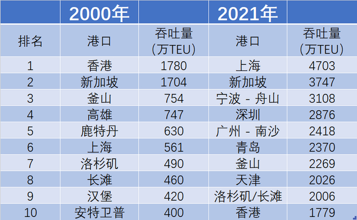 全球十大港口演变:2000年 vs 2021年