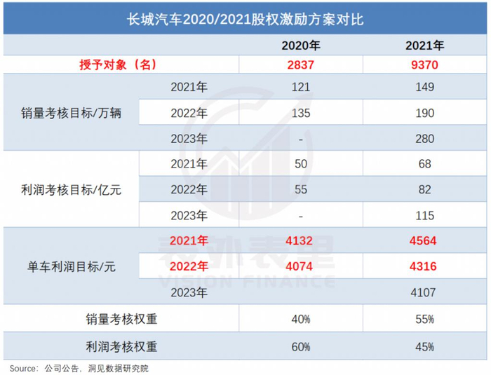 市场执著这个问题,开始于长城2021年5月上调股权激励目标:需要达成的销量目标增长了60%,利润目标增长了36%。