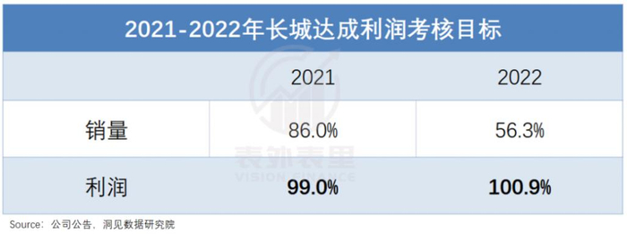 长城也得到了自己想要的:2021 年净利润实现 67.3 亿,2022 年 82.7 亿元,双双达标。
