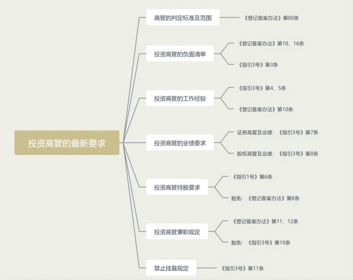 《登记备案办法》及其配套指引提升了投资高管的任职要求,重点强调高管的专业经验及胜任能力,未来,私募机构招聘到符合要求的投资高管也是一大难题。